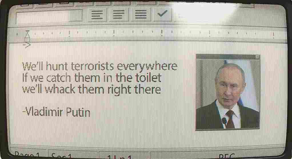 In September 1999, bombings rocked Moscow, killing 300 civilians. Panic spread nationwide. Putin appeared on TV with a fierce message: